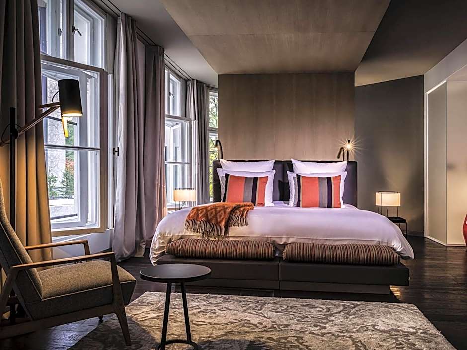 Some of these rooms have a view of the city and courtyard view. A lounge area and a bathroom with a rain shower is featured.